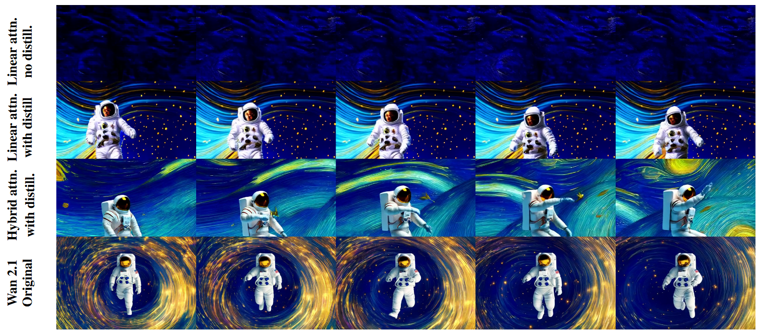 We propose an efficient attention surgery strategy — eliminating the need for extensive retraining from scratch — coupled with a novel efficient hybrid attention architecture inspired by recent developments in language modeling. Intuitively, if a small subset of tokens retains full softmax attention while the rest use linear attention, the model can preserve global structure and fine-grained dependencies where needed, while scaling efficiently elsewhere.